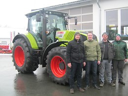 Wir gratulieren unserem Kunden Markus Nagengast aus Hallerndorf zum neuen CLAAS ARION 650! (Bild: v.L. Markus Nagengast, CLAAS Verkaufsberater Peter Förtsch, Matthias Teufel, CLAAS Werkstattgeselle Klaus Kilian)