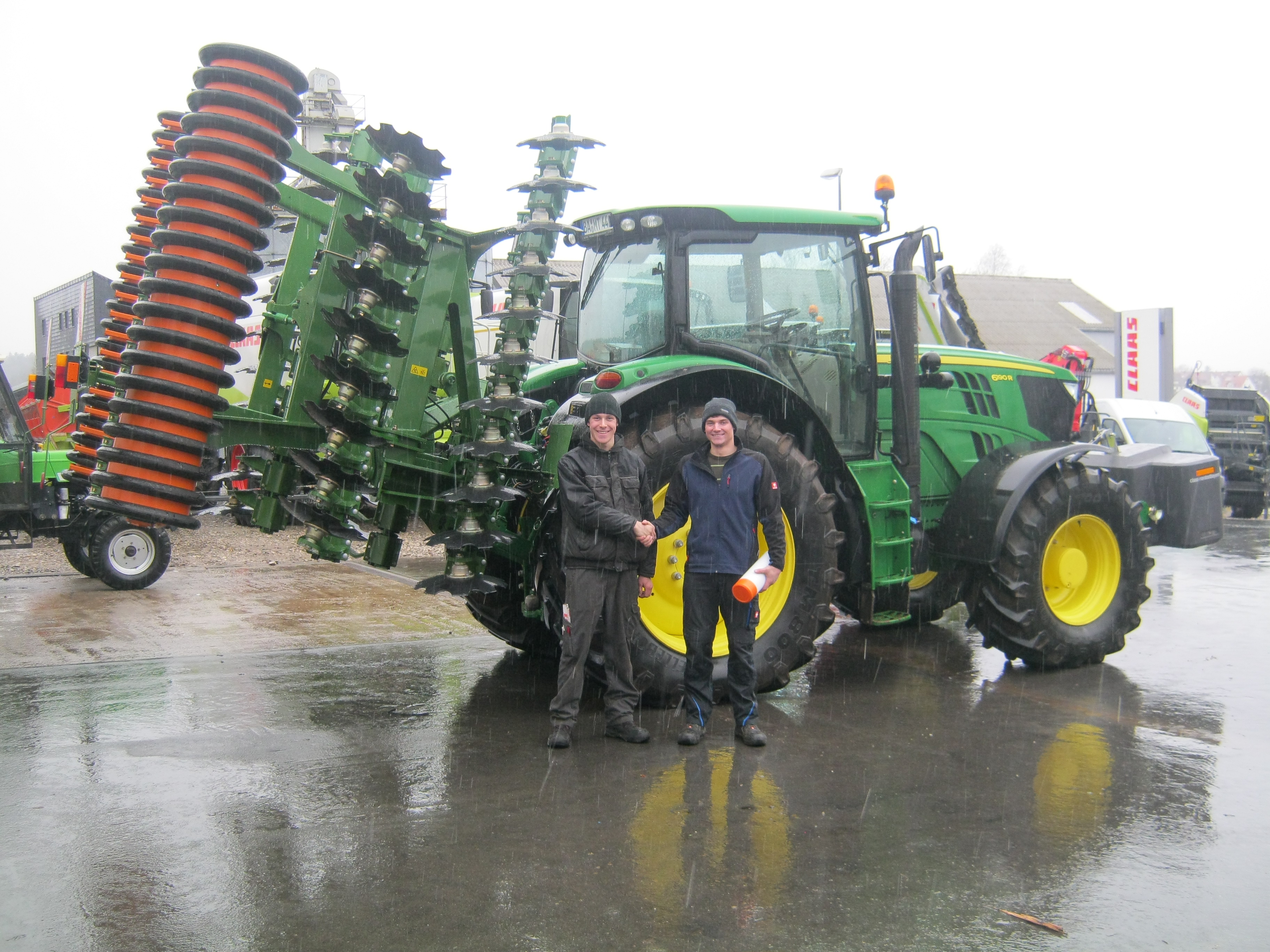 Wir gratulieren unserem Kunden Norbert Wunner aus Voitmannsdorf zur neuen Amazone Catros 5001 (Bild: v.l. CLAAS Auszubildender Florian Grasser mit Michael Wunner)